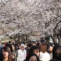 밤 열한시 반. 학교에 들어가는 길에, 큰 벚꽃나무가 멋들어지게 꽃을 피우고있어 한 컷-